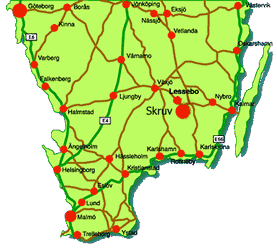 Från riksväg 25,ca 10 km öster om Lessebo, sväng mot Skruv. Följ vägen till samhället.